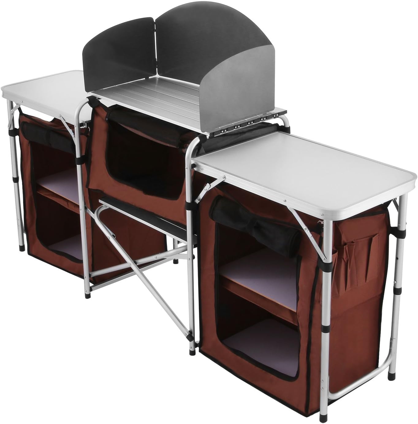 Sold and shipped by spreetail. Comes with large cooking table with windscreen, this portable kitchen cook station is the outdoor camping essential to ensure more effective burning and enable you to enjoy a big meal anytime. We carry a variety of portable options to choose from in a range of colors and styles. 60 bbq folding portable cooking table kitchen outdoor camping picnic shelves see more like this. Keter 197283 folding portable table tool stand workbench with 2 12 inch wood clamps for miter saws, home improvement, and construction, black & yellow keter 2.4 out of 5 stars with 7 ratings 5.0 out of 5 stars. Costway portable bbq camping grill table kitchen sink station w/ storage organizer basin. Snap a few pieces into place, hang your spatula and tongs from the hooks, and you're ready to fire up the grill. The casters can be modified to create a level tabletop on uneven ground. You can even get a portable kitchen island with seating. Whether you want a butcher block countertop surface for meal prep, stainless steel, granite or concrete surface you can find it in a portable island. Crosley furniture crosley alexandria stainless steel top portable kitchen island, white. Portable (6) stationary (10) width.